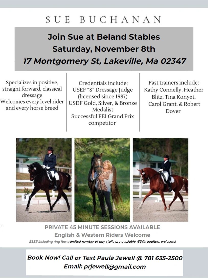 Click here to sign up for the November 8th Clinic with Sue Buchanan.